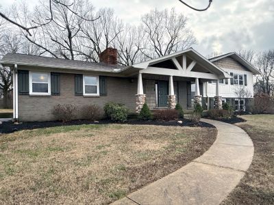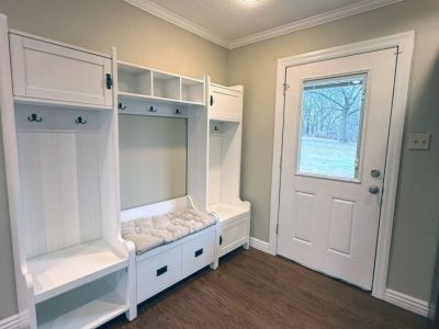 workspace or hobby area. The upper level hosts three bedrooms and two